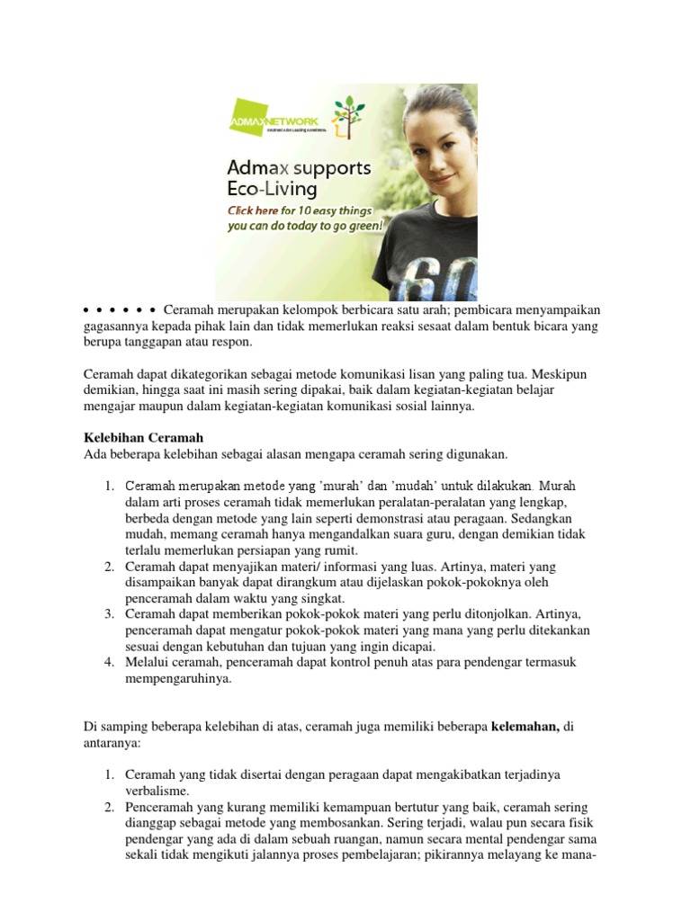 CERAMAH.docx - CERAMAH Ceramah adalah pidato yang bertujuan untuk menerangkan atau menyiarkan nasehat dan petunjuk-petunjuk berkaitan dengan | Course Hero