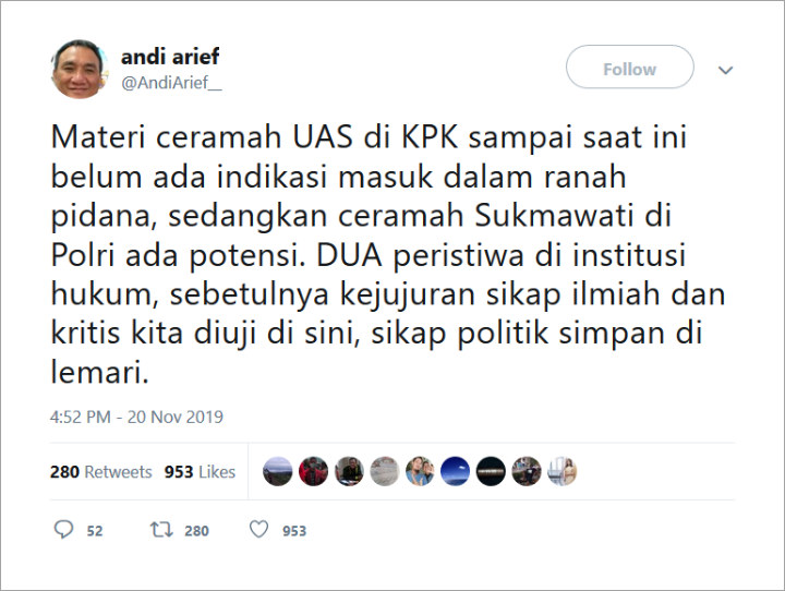 Tausiah Ustaz Abdul Somad di KPK Disoal, Andi Arief ‘Sentil’ Kasus Sukmawati
