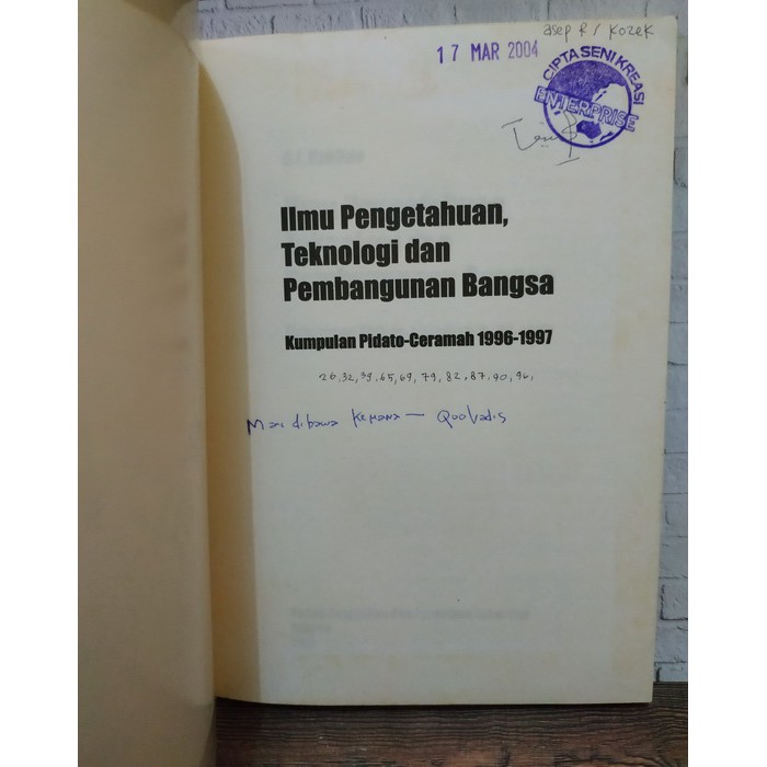 IG: WarungSejarahRI on Twitter: “Buku Lawas> Ilmu Pengetahuan Teknologi dan Pembangunan Bangsa. Karya Prof. DR. -ING B.J. Habibie. Tahun 1992. 927 halaman. Harga 135.000. Minat? Order: DM or Klik WA https://t.co/xMnymNzYyW… https://t.co/GbA4deP6kr”
