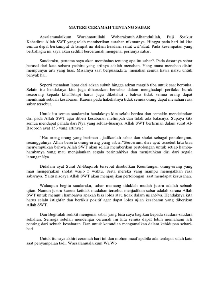 15 Contoh Teks Dakwah tetang Sabar, ibu, lingkungan, dan Sholat …
