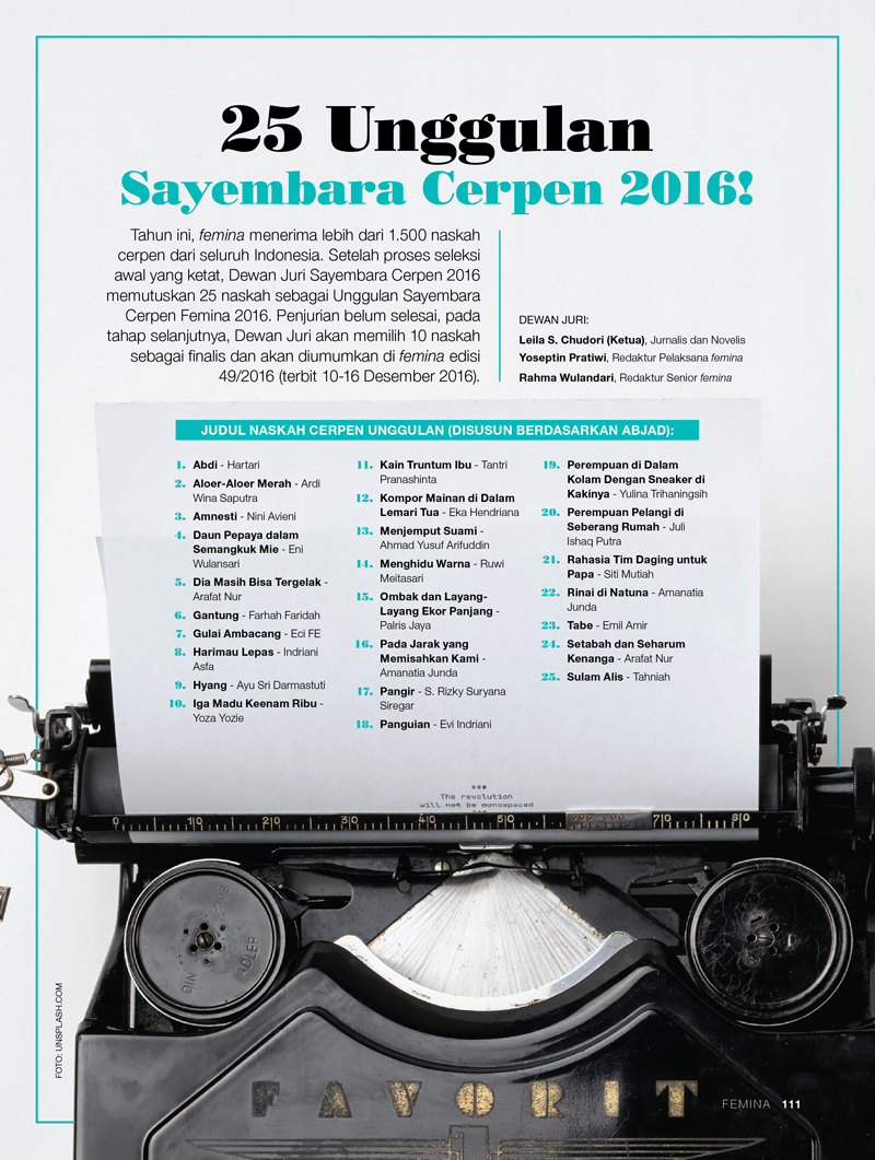 Lomba Cerpen dan Cerber femina 2016/ 2017