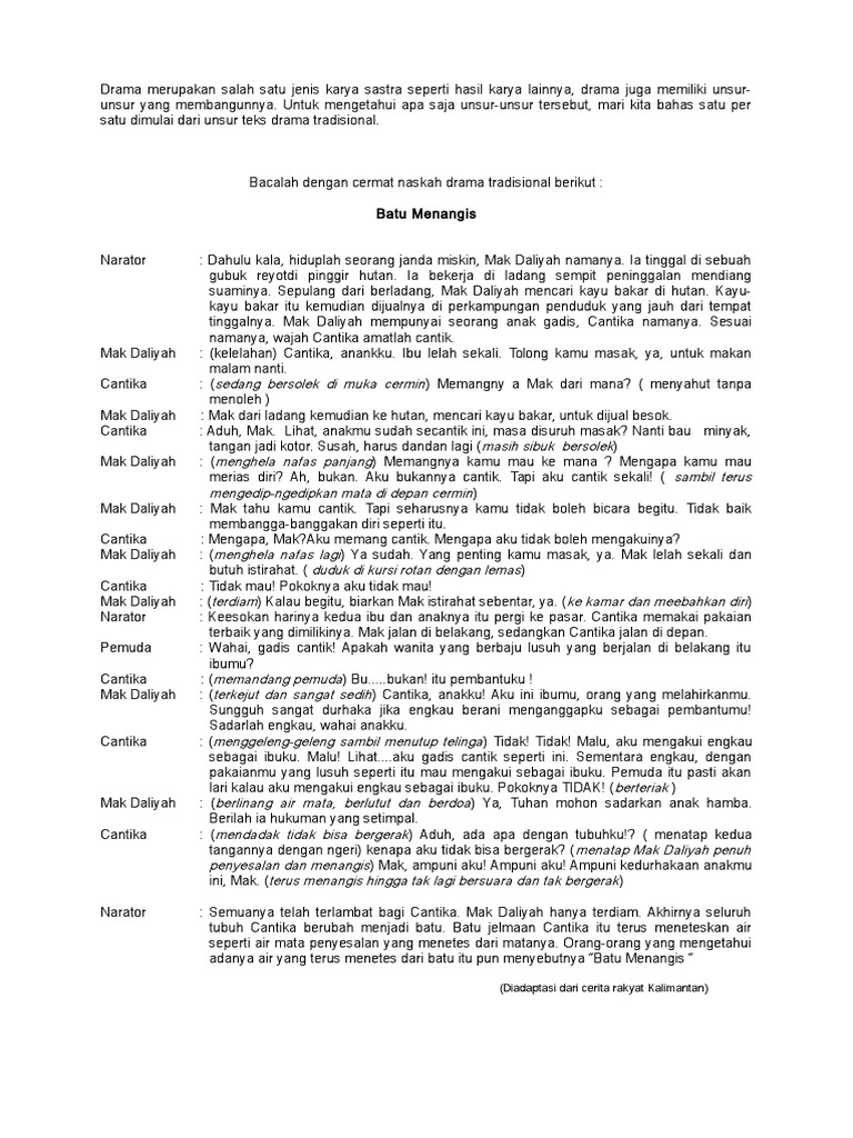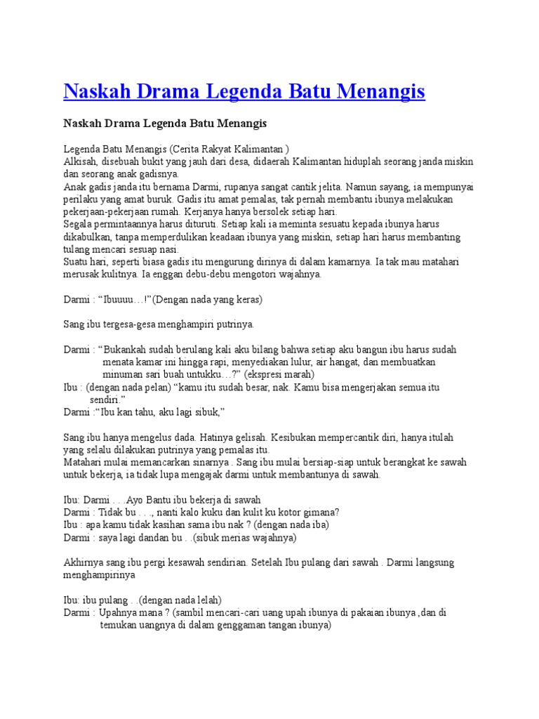Naskah Drama Legenda Batu Menangis Untuk 5 Orang - Contoh Naskah