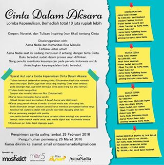 LOMBA MENULIS CERITA CINTA DALAM AKSARA ASMA NADIA | Milda Ini