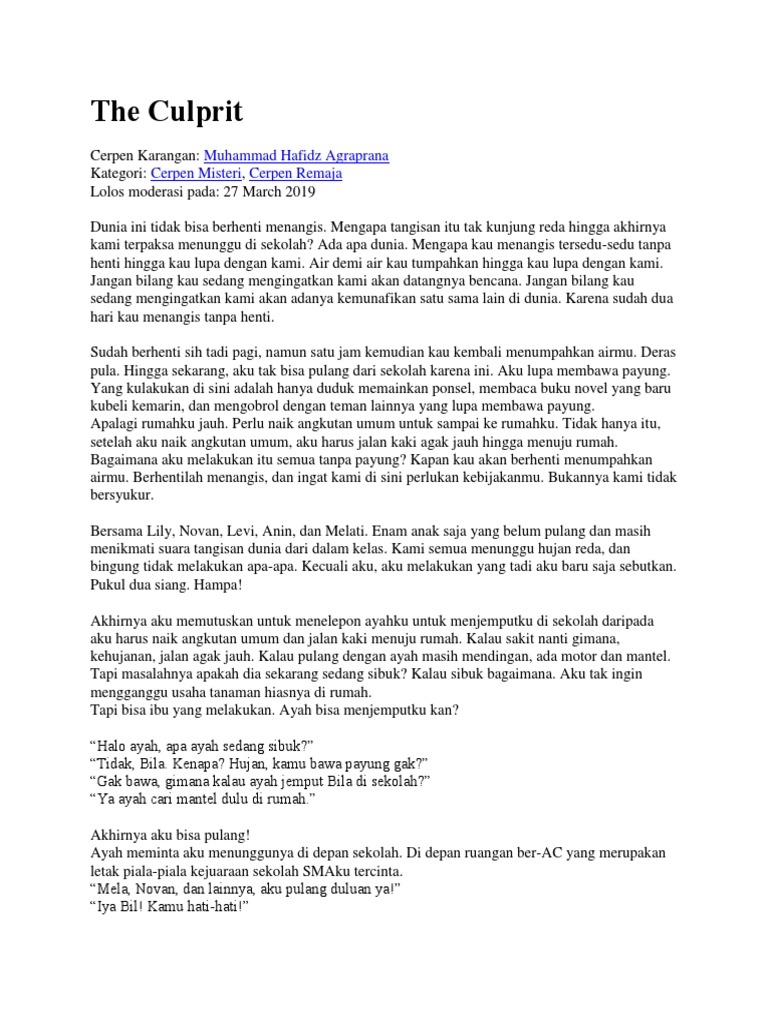 The Culprit: Muhammad Hafidz Agraprana Cerpen Misteri Cerpen Remaja