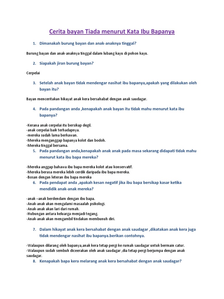 Cerita Bayan Tiada Menurut Kata Ibu Bapanya