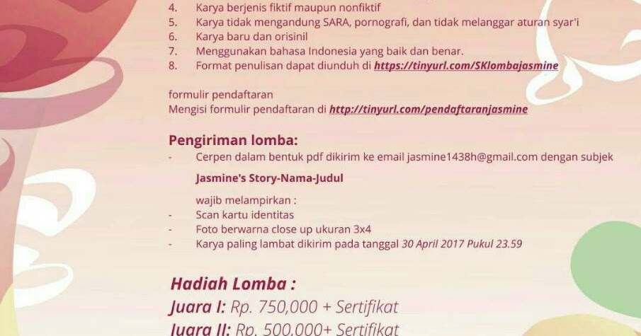 Gratis) Lomba Cerpen 2017 “Jasmine’s Story P3R 1438H” - Info Lomba 2020 Terbaru