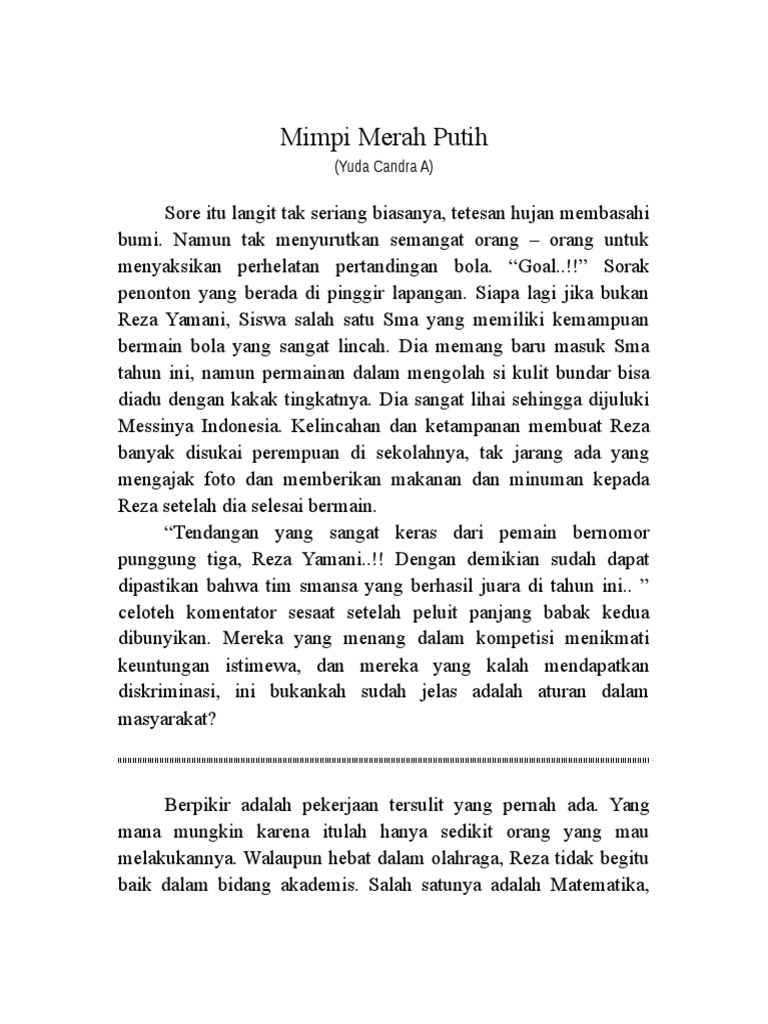 cerpen bahasa indonesia " mimpi merah putih "