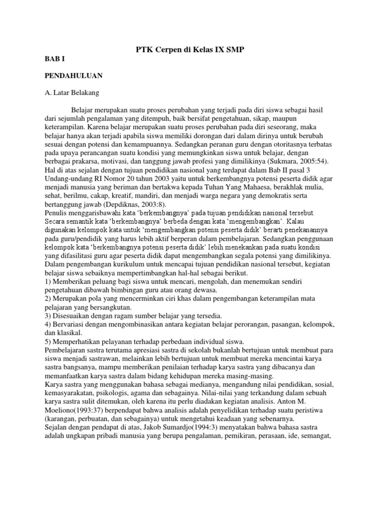 PTK Cerpen Di Kelas IX SMP