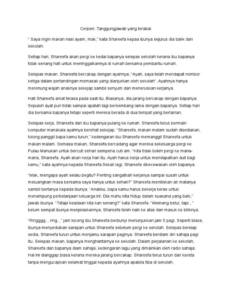 Cerpen Tanggungjawab Yang Terabai