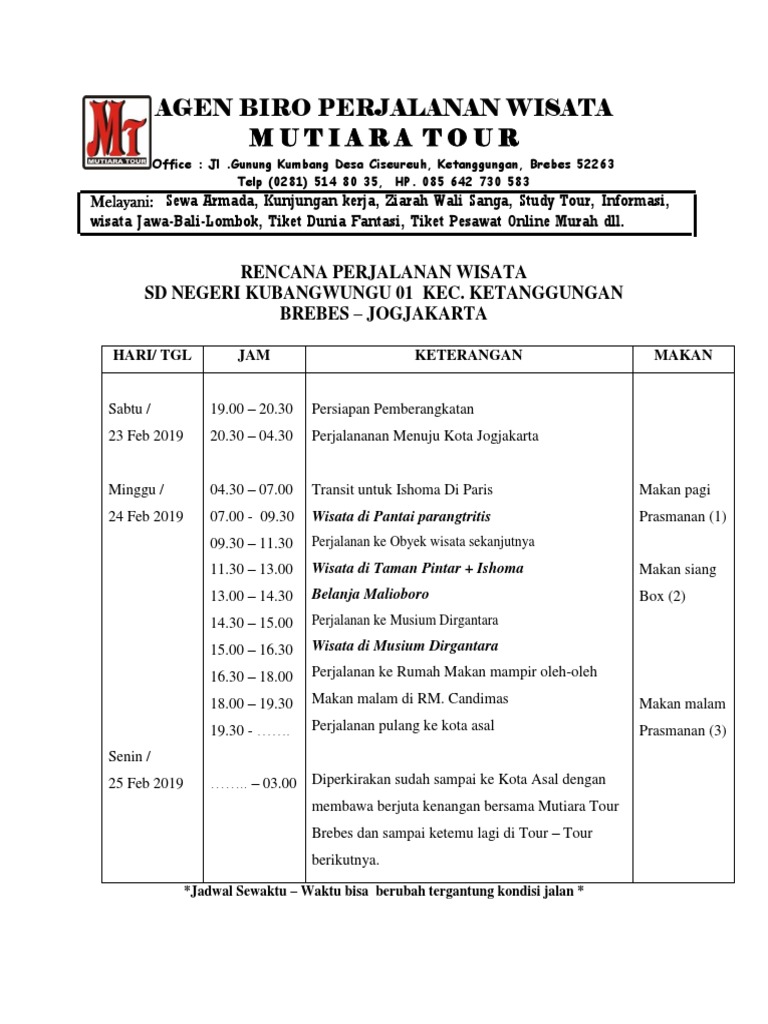 Contoh Jadwal Perjalanan Wisata Ke Jogja - Wisata Alam Jawa