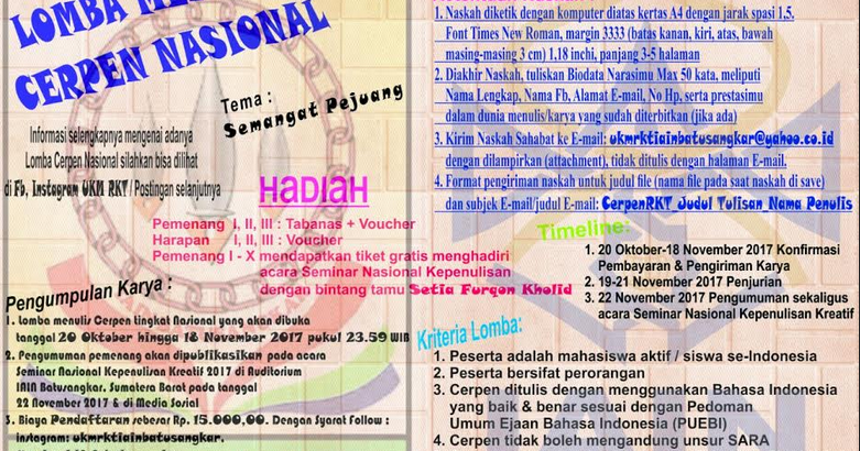 Lomba Menulis Cerpen Nasional 2017 di IAIN Batusangkar - Info Lomba 2020 Terbaru