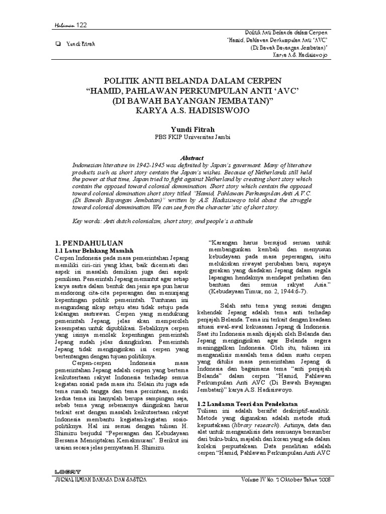 PDF) Wacana Politik dan Diskriminasi dalam Kumpulan Cerita Pendek Pao An Tui Karya Dwicipta