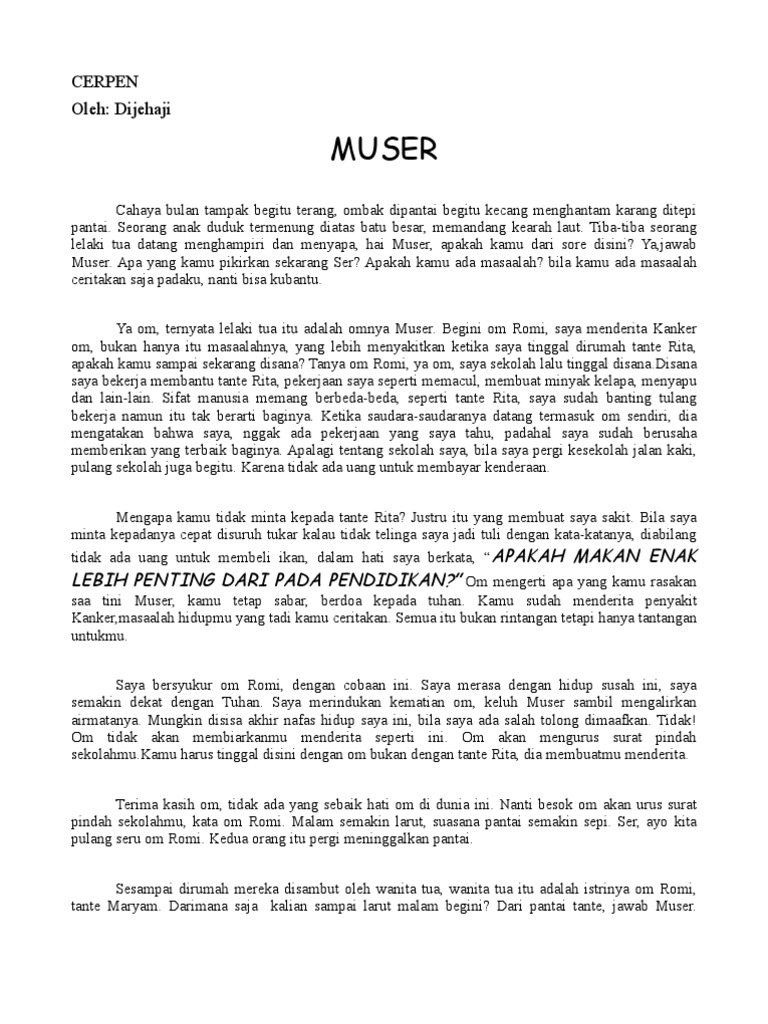 DOC) Cerpen Remaja karya Risdatul Zulfiah " | Anggoenzha Wijaya …