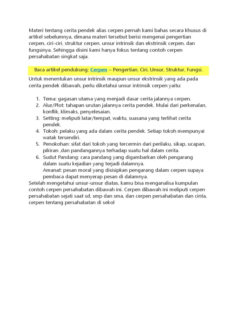 Contoh Cerpen Persahabatan Beserta Unsur Intrinsiknya Dan …