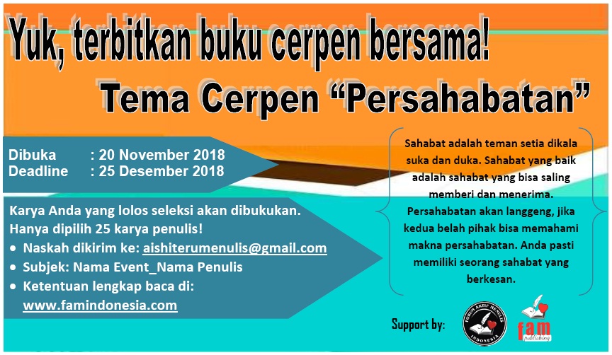 Penerbitan Buku Antologi Cerpen Bertema “Persahabatan” [Deadline Diperpanjang]