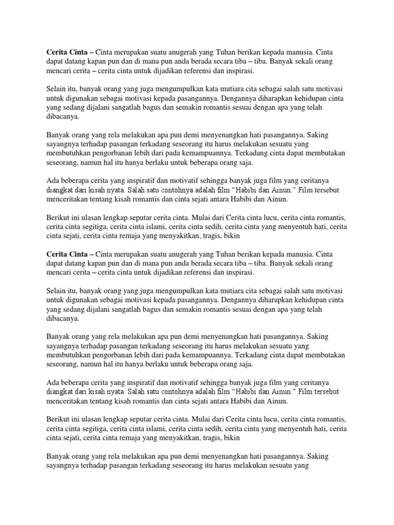Cerita Cinta – Cinta merupakan suatu anugerah yang Tuhan berikan kepada manusia. Cinta