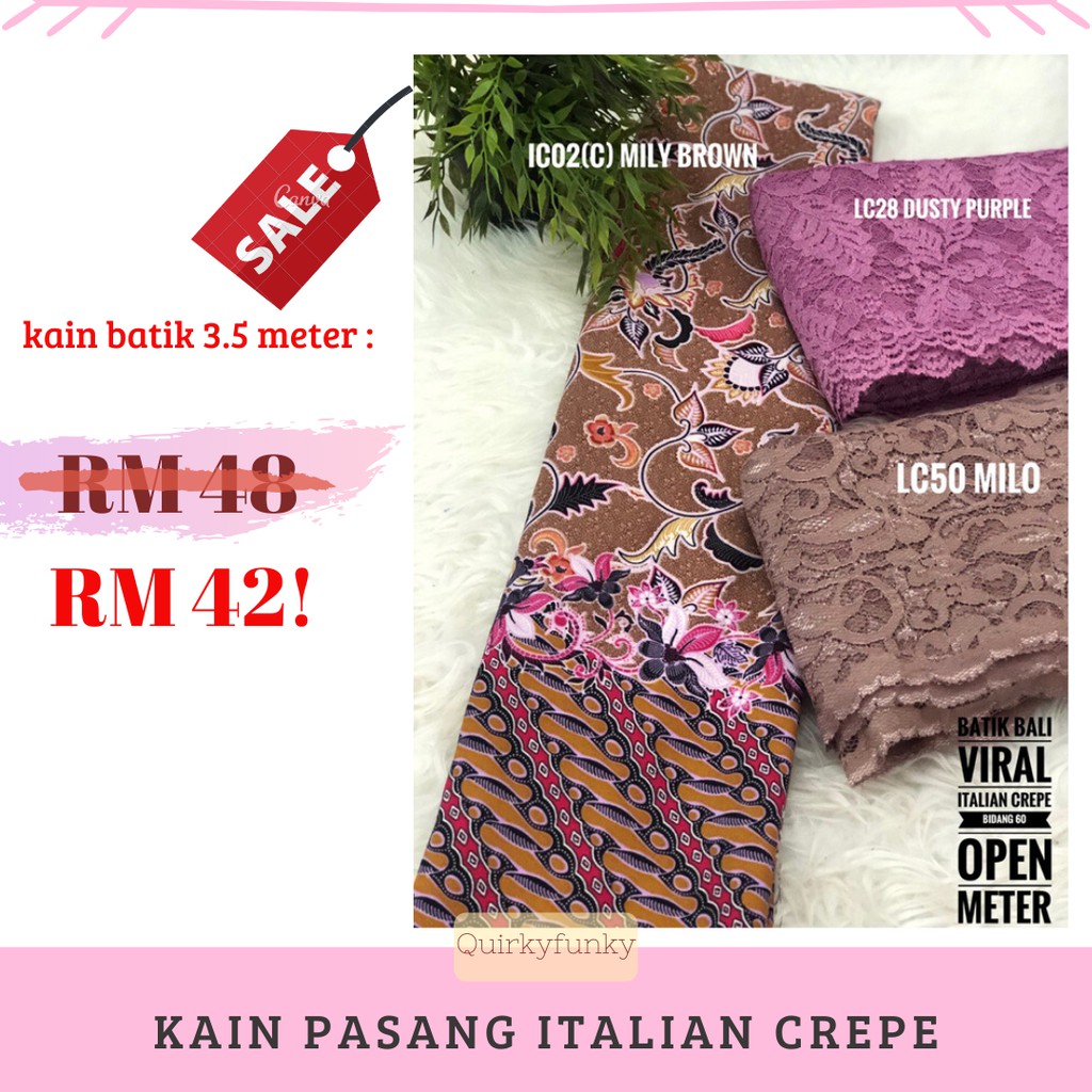 KAIN PASANG ITALIAN CREPE CORAK BATIK BALI + LACE BIDANG 60 CANTIK LEMBUT BERAT | Shopee Malaysia