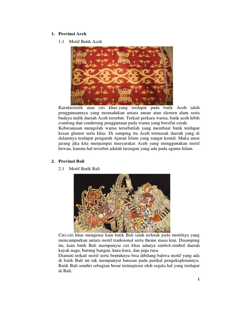 Ciri - Ciri Karya Seni Motif Batik dari Provinsi Bali - Senibudayasia