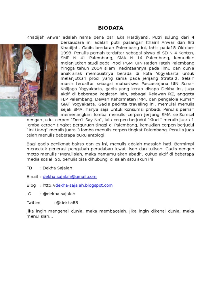 Contoh Biodata Penulis Cerpen - Mosaicone