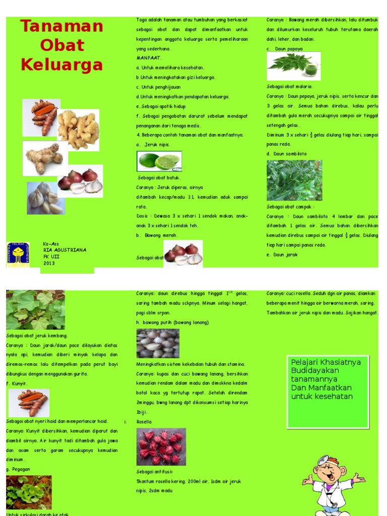 leaflet TOGA (tanaman obat keluarga) | Tanaman obat, Tanaman, Kebugaran