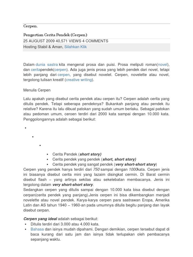 Cerpen Adalah Satu Cerita Pendek Yang Mempunyai Satu Tema Yang Utama Dan Selalunya Mengandungi 6 Hingga 8 Muka Surat Sahaja
