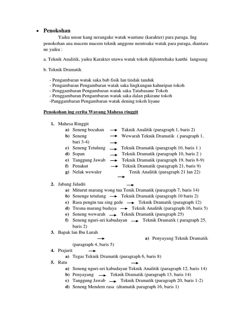 Penokohan dalam bahasa jawa