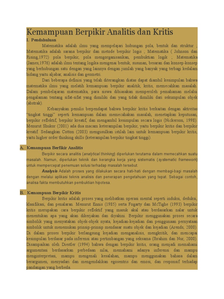 Kemampuan Berpikir Analitis Dan Kritis