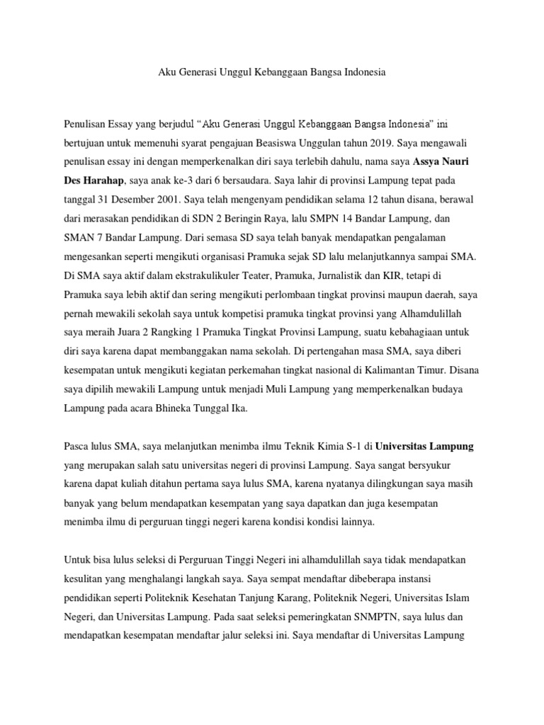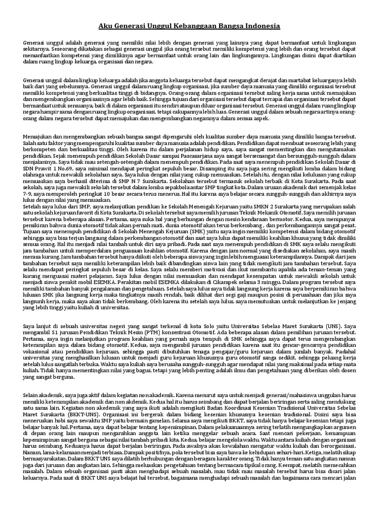Essay Aku Generasi Unggul Kebanggaan Bangsa Indonesia - PDF Free Download