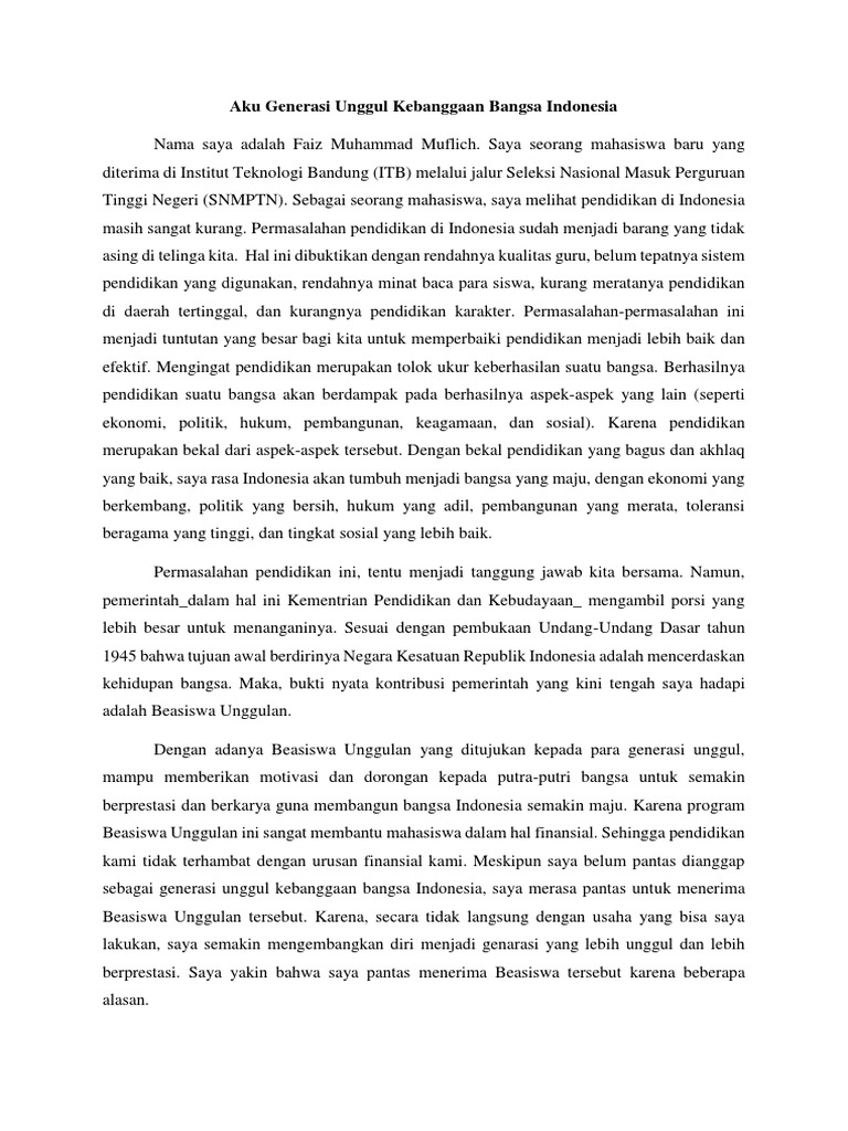 Contoh Essay Aku Generasi Unggul Kebanggaan Bangsa Indonesia | Beasiswa Unggulan