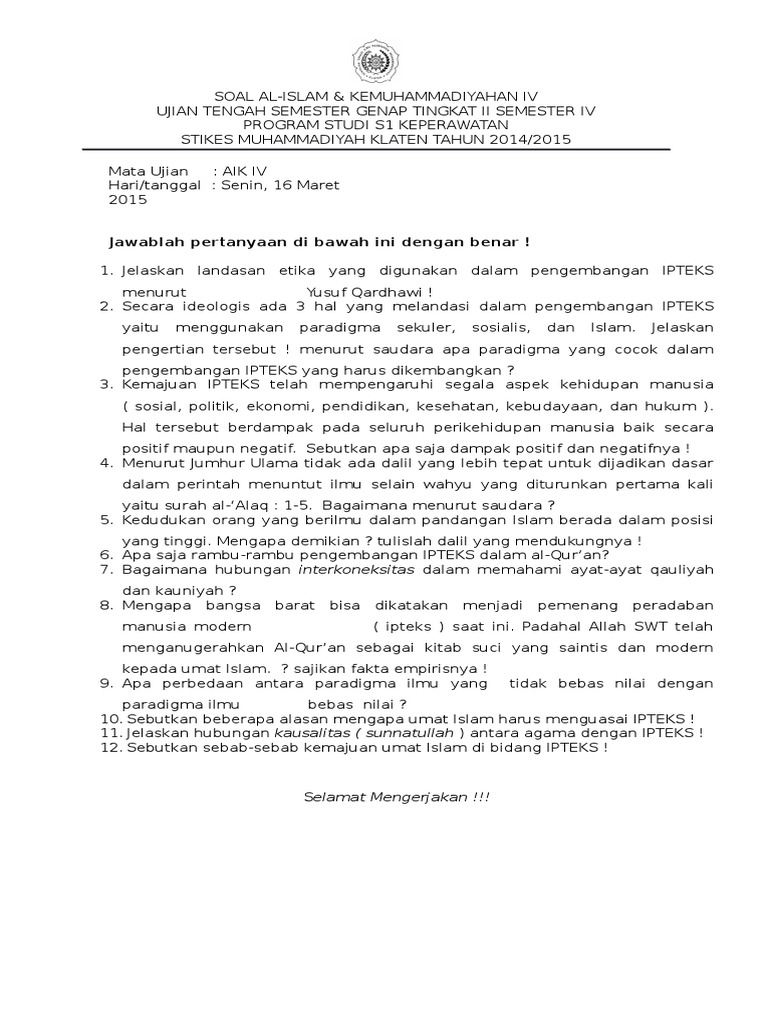 PDF) SOAL AL-ISLAM KEMUHAMMADIYAHANAL-ISLAM DAN KEMUHAMMADIYAHAN