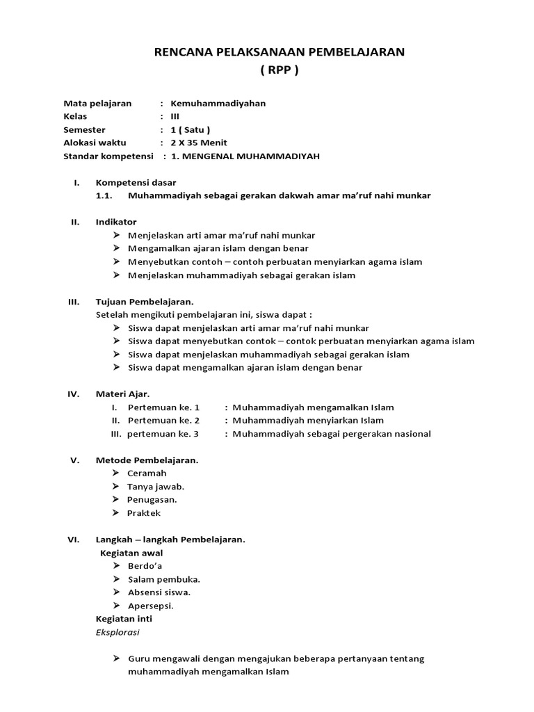 GURU BERBAGI | RPP Kemuhammadiyahan Kelas 8 Ganjil