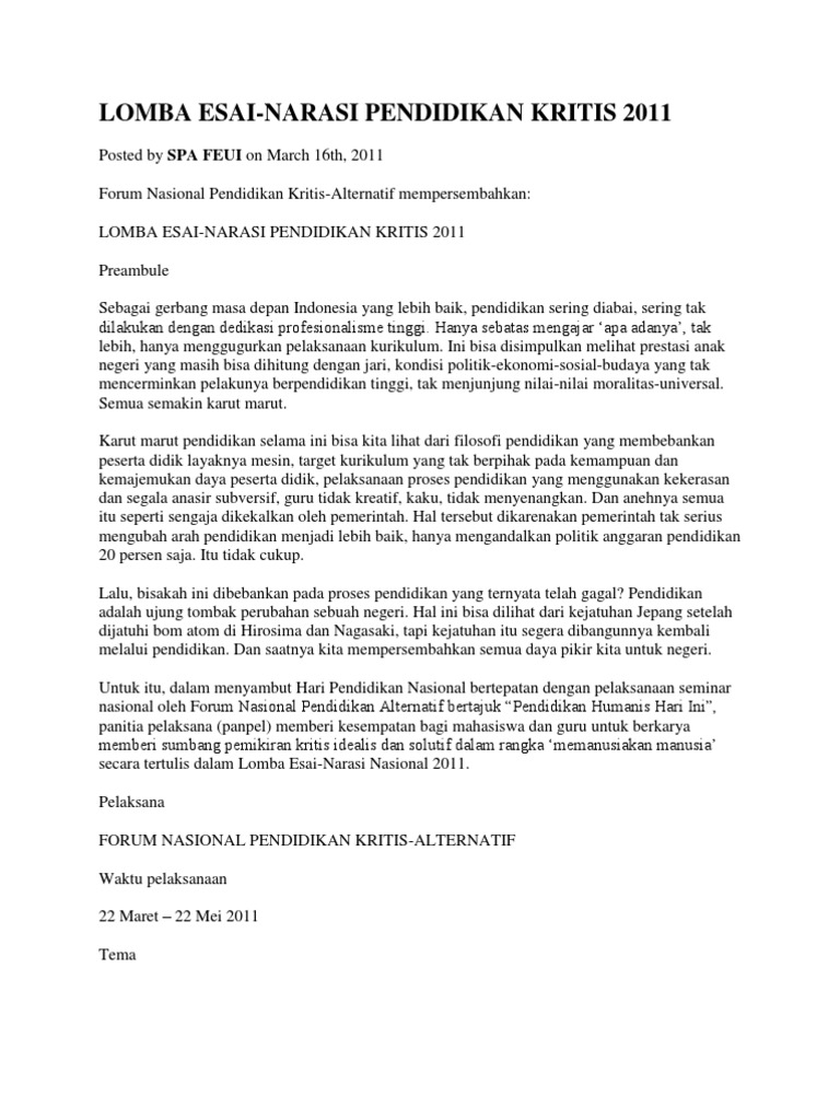 lomba esai-narasi pendidikan kritis 2011