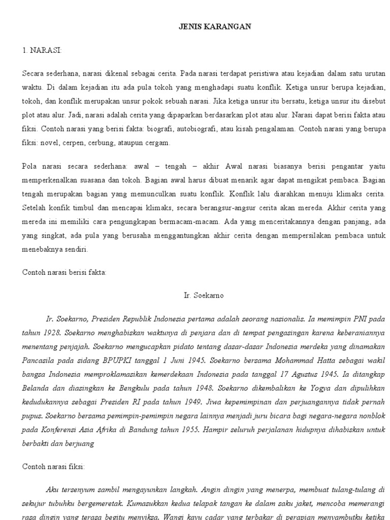NARATIF NON FIKSI.docx - Pengertian Karangan Narasi Karangan narasi adalah karangan yang menceritakan suatu kejadian secara runtut sesuai dengan urutan | Course Hero