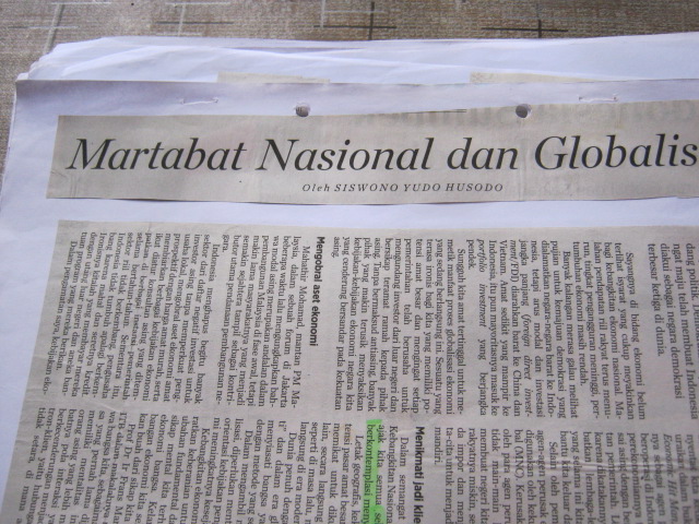 kumpulan kliping sosial politik, ekonomi dan budaya: Kliping Koran : Martabat Nasional dan Globalisasi