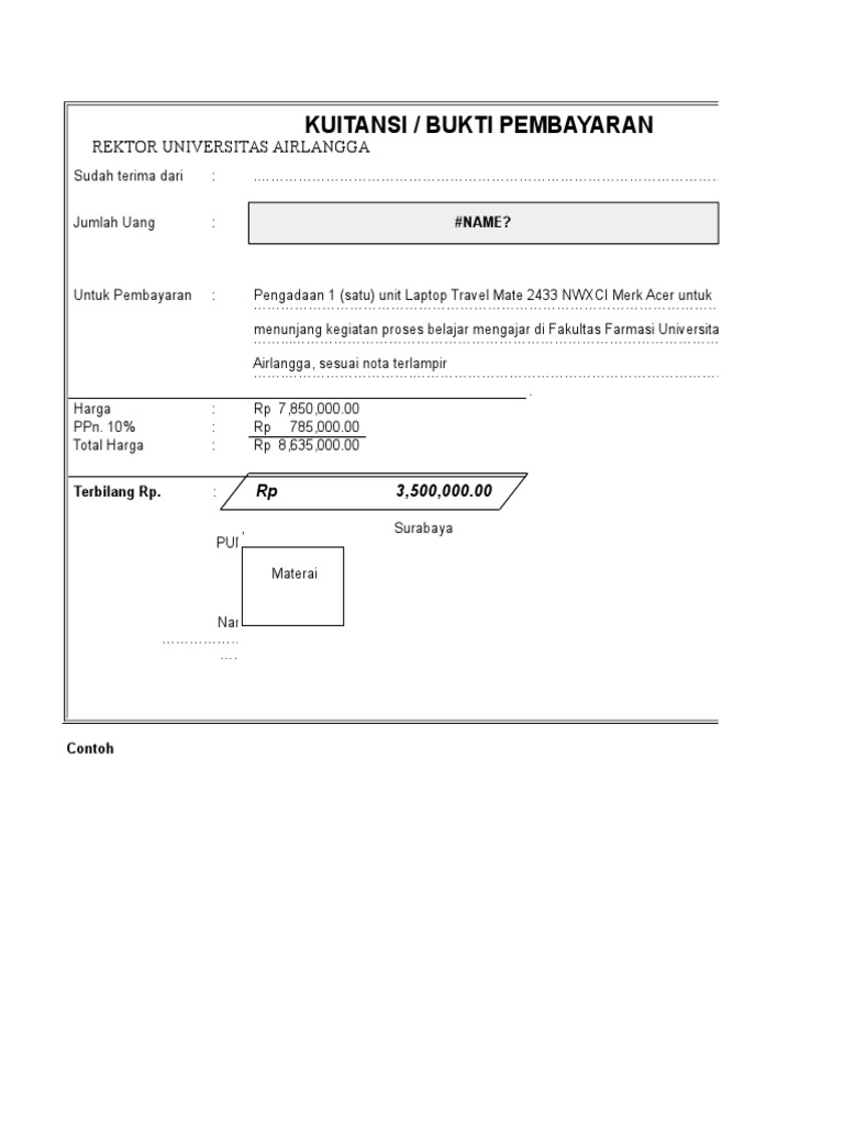 Contoh Kwitansi Pembayaran Excel Yang Benar - Dicontoh