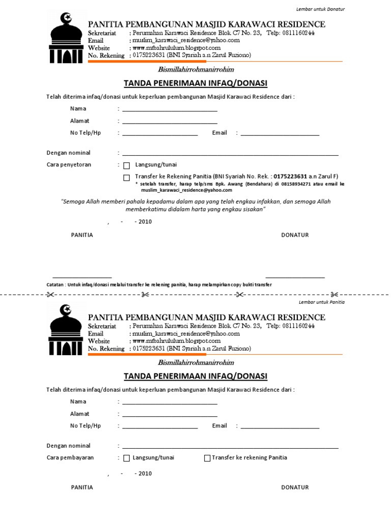 Contoh Kwitansi Donatur Masjid - Modif 4