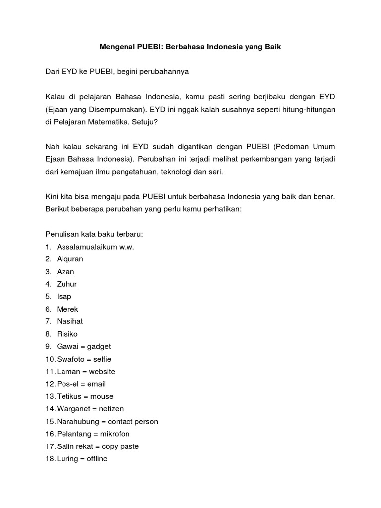 Contoh Perubahan Kata Dari Eyd Ke Puebi