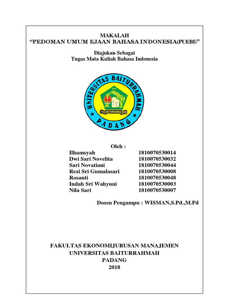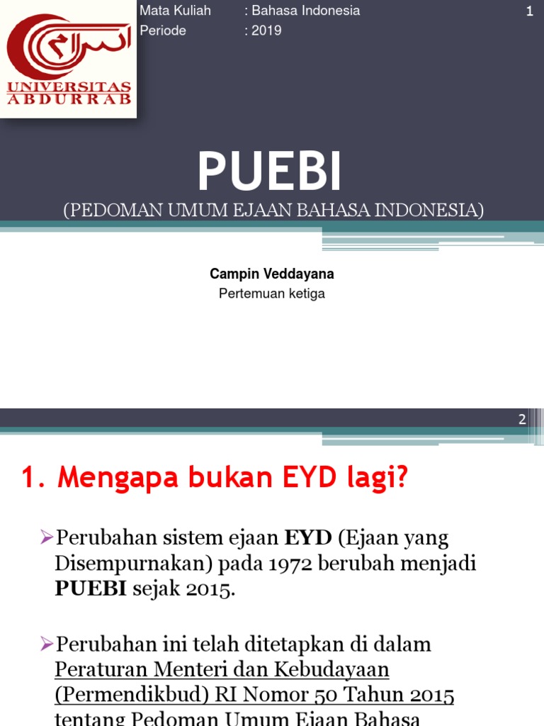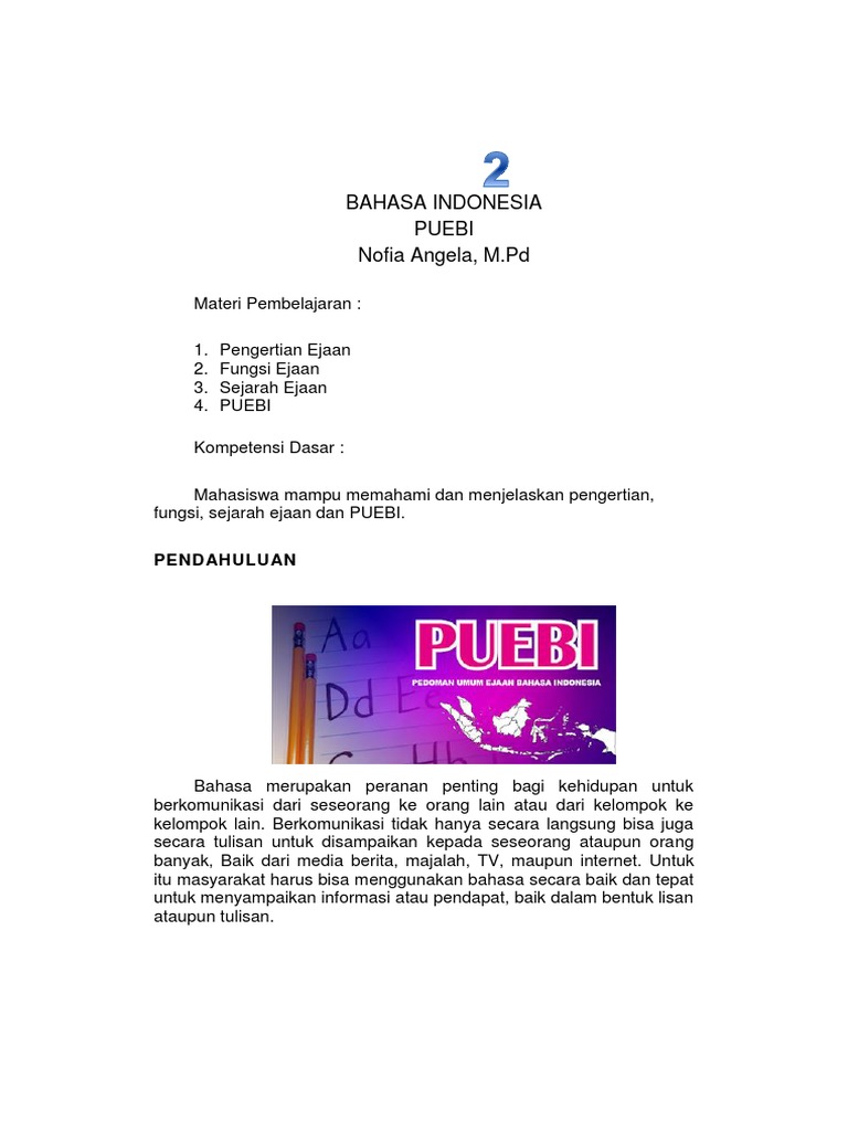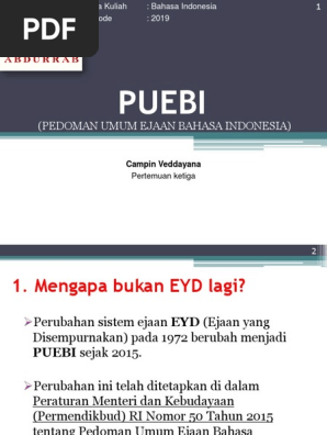 PDF) Pengenalan Pedoman Umum Ejaan Bahasa Indonesa (PUEBI) dalam Mengembangkan Kemampuan Berbahasa Indonesia yang Baik dan Benar bagi para Guru