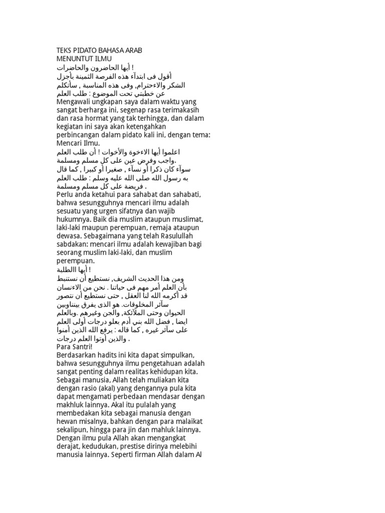 Doc Pidato Bahasa Arab Mencari Ilmu Jiman Jiman – Cute766