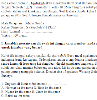 Soal Ulangan Ujian Uts Bahasa Sunda Kelas 10 Sma Semester 1 | belajar pidato dan soal ujian terlengkap