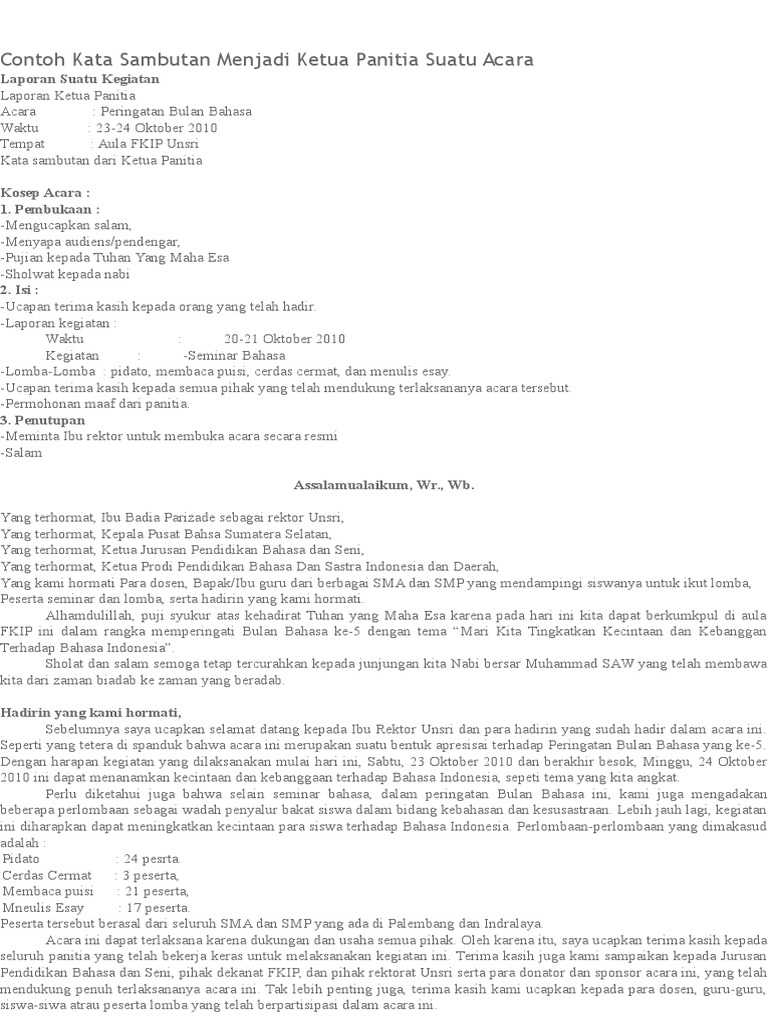 DOC) Contoh Kata Sambutan Ketua Panitia | ari bukhari - Academia.edu