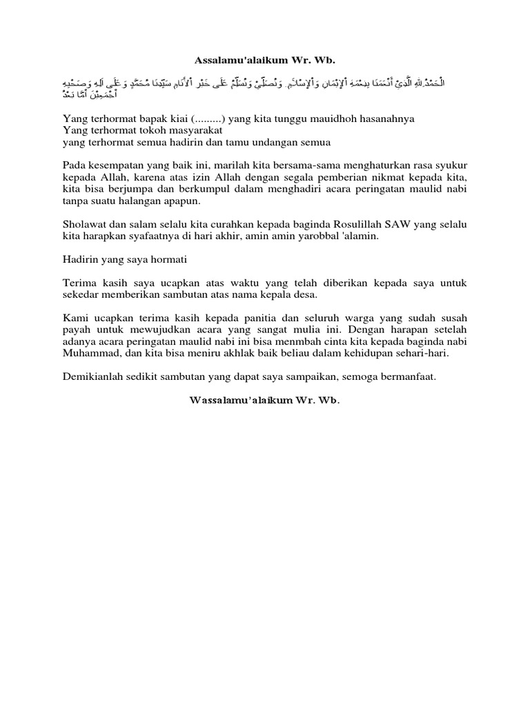 Pidato Sambutan Kepala Desa Acara Maulid Nabi