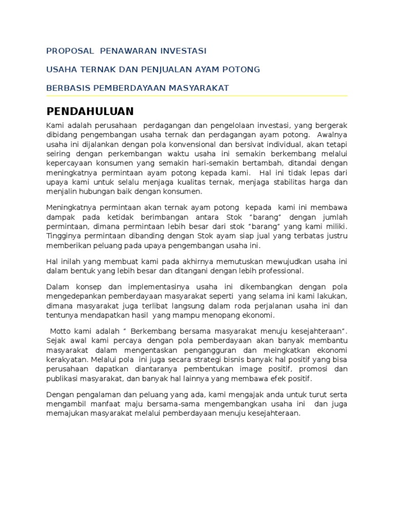 contoh Proposal Usaha Beternak Ayam Pedaging - Documents