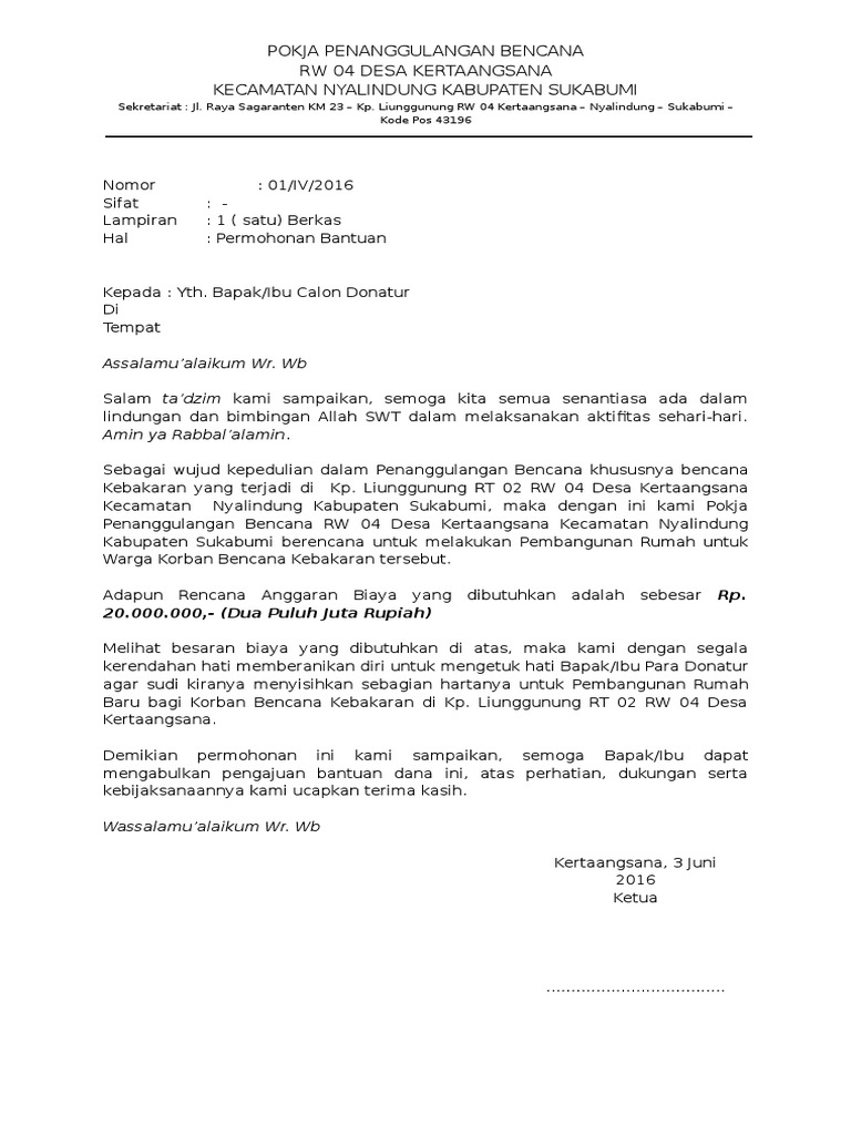 Contoh Surat Permohonan Bantuan Dana Bencana Alam - Dapatkan Contoh