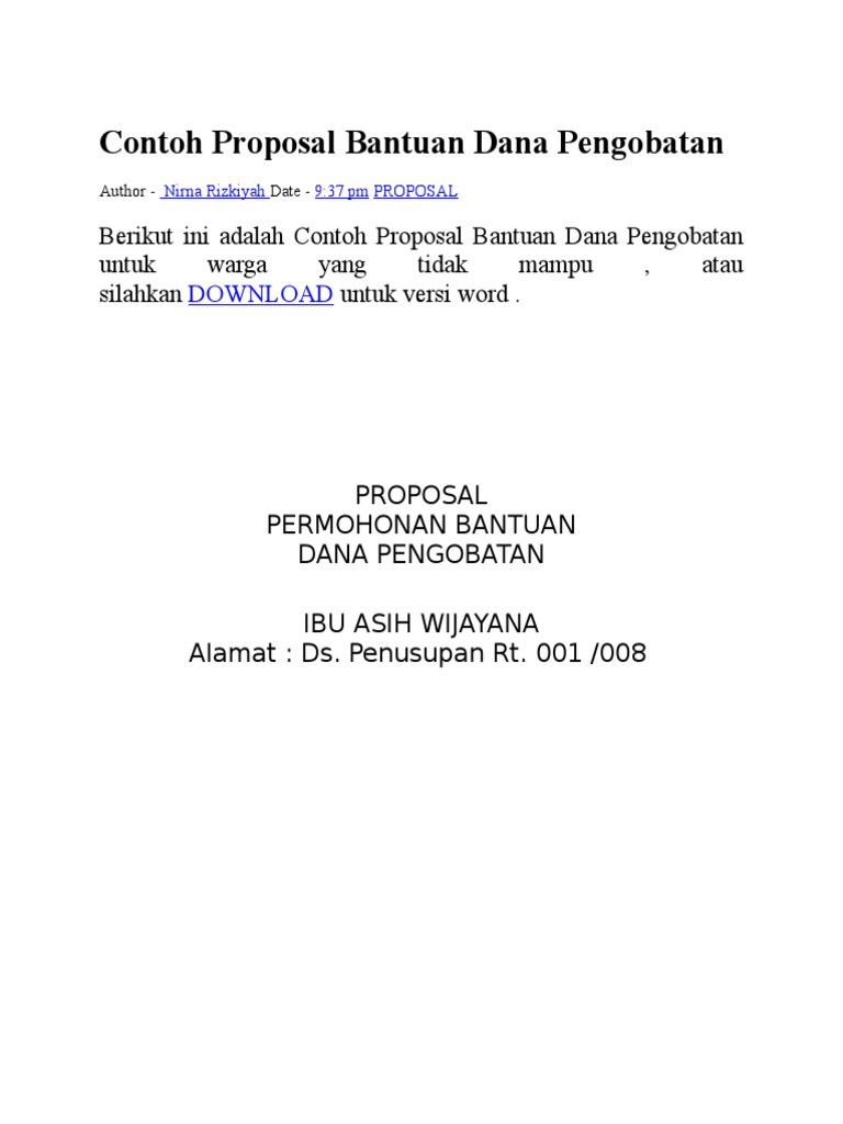 Contoh Proposal Bantuan Dana Pengobatan