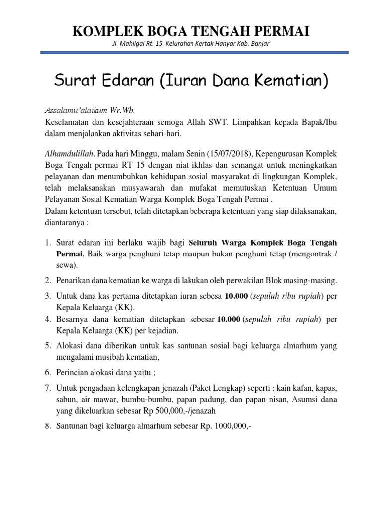 Contoh Surat Edaran Iuran Warga