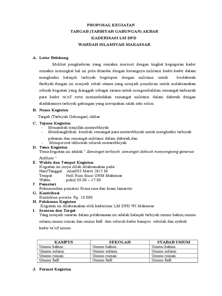 DOC) Proposal Pelatihan Kader Dakwah | Ahmad Mudhofar - Academia.edu