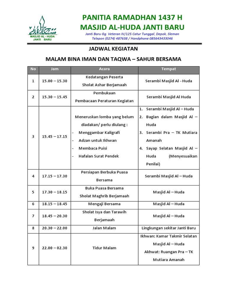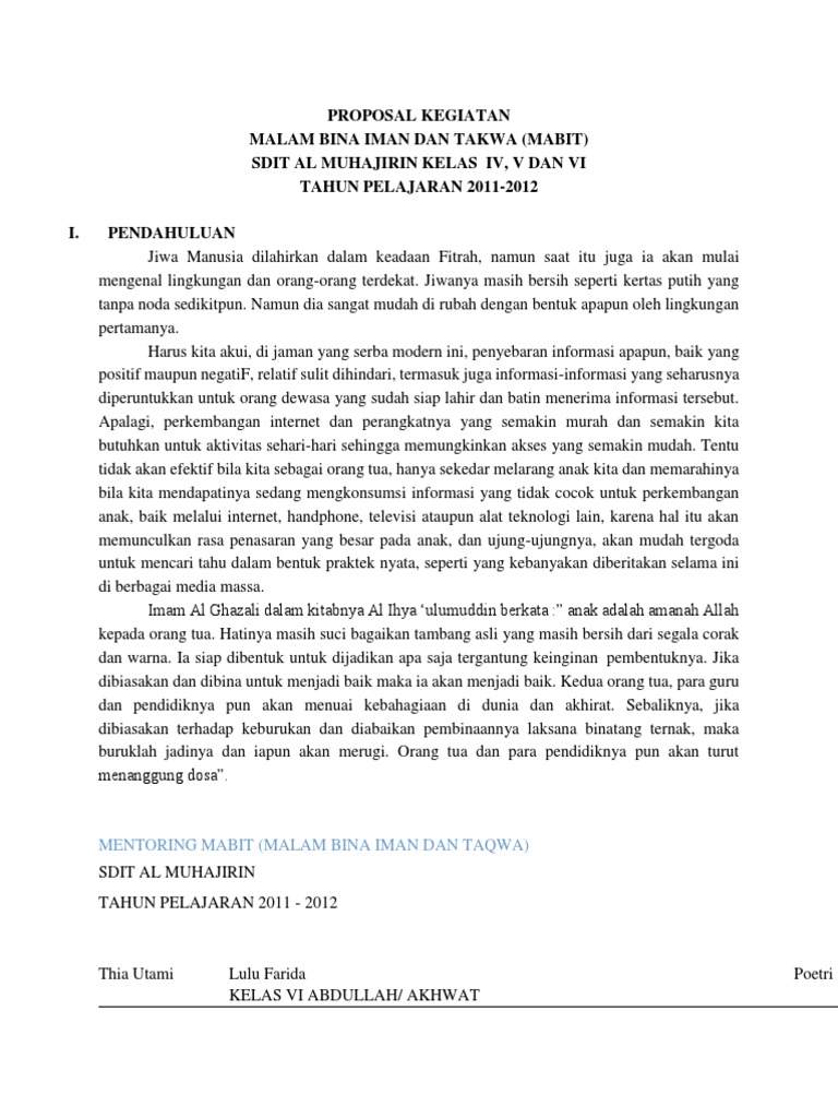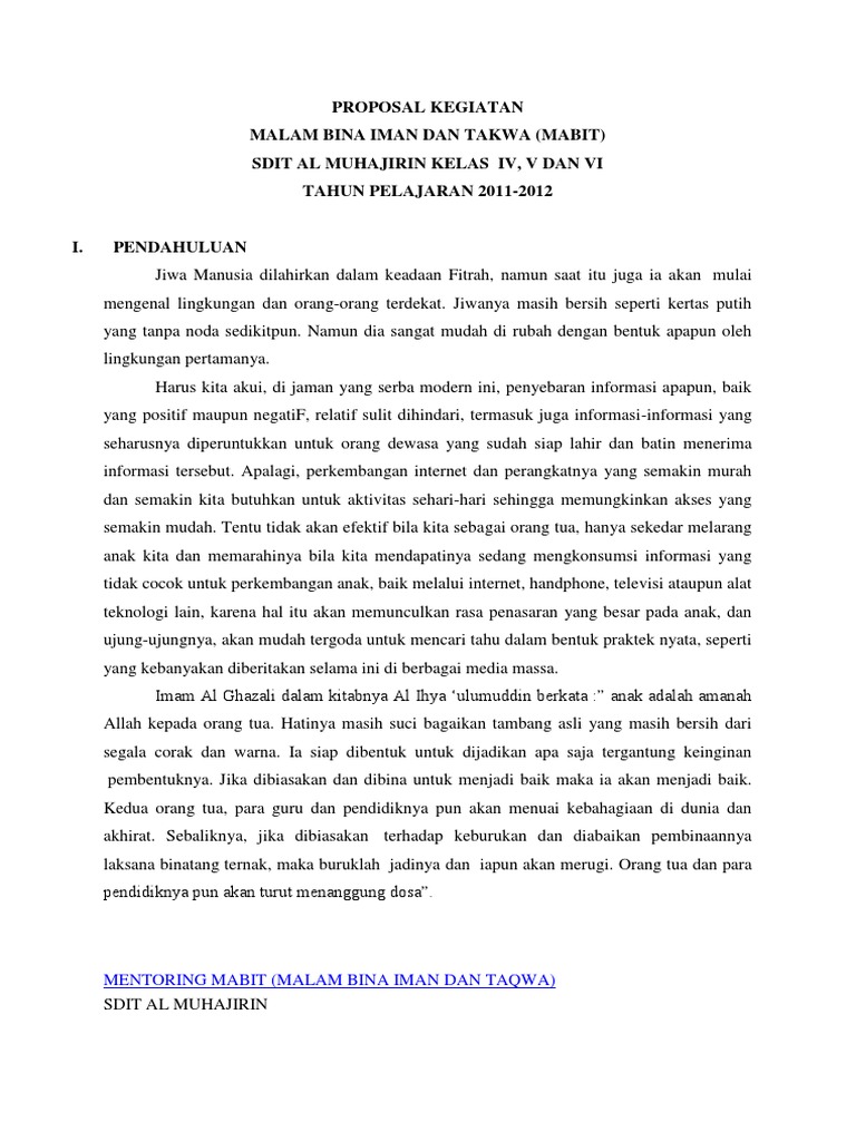 DOC) PROPOSAL PELAKSANAAN MABIT (MALAM BINA IMAN DAN TAQWA | Rilo Albantani 313 - Academia.edu