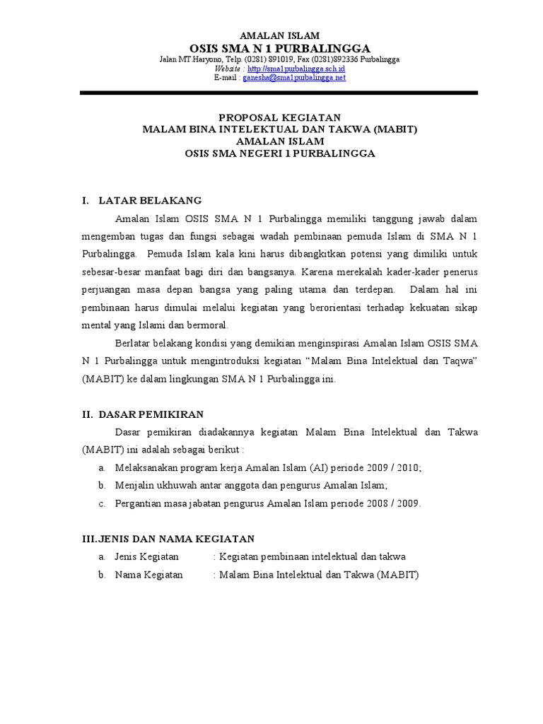 Proposal Mabit Amalan Islam SMA 1 Purbalingga - [DOC Document]