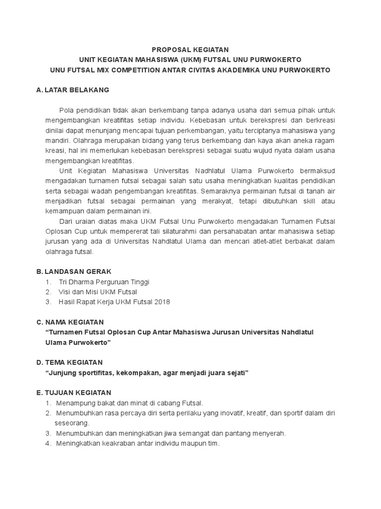 DOC) Contoh Proposal Kejuaraan Futsal FFC CUP II | Rezky Nuradi - Academia.edu